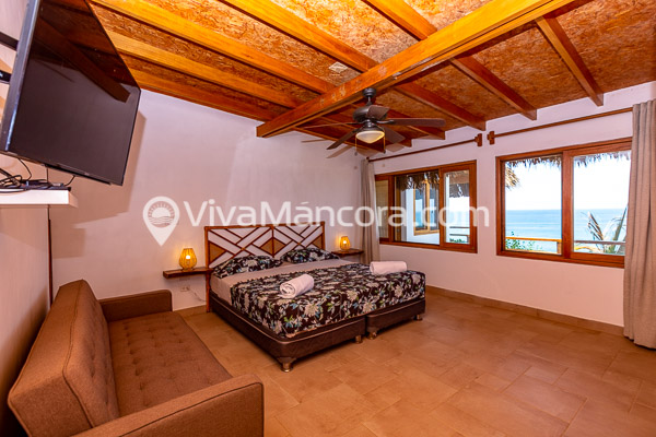 * Hab 1 : 1 cama King, baño privado, terraza privada con vista al mar, TV y AC.