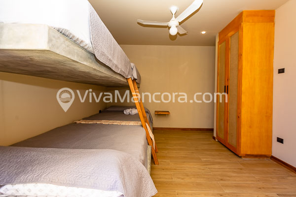 2 habitaciones con dos camarotes (para 4 personas cada habitación), con cama de dos plazas abajo y plaza y media arriba, baño completo en cada habitación.