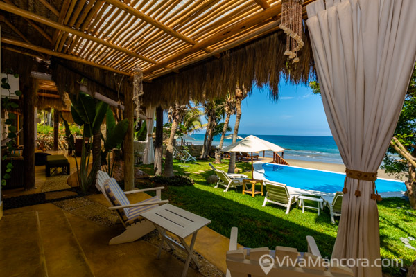 Casa del Rocío es una acogedora casa de playa ubicada en 1era fila frente al mar, en la exclusiva playa de Las Pocitas Máncora, Perú. Km. 1215, antigua Panamericana Norte.