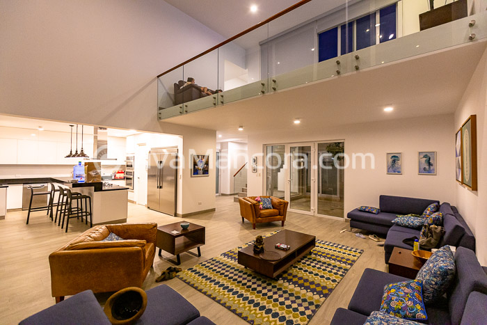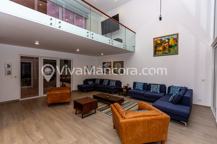 – Amplia sala, comedor doble altura, y terraza techada de 50 mts.