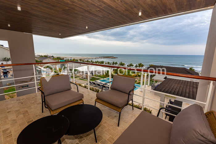 – La suite con cama King, televisor con cable y terraza con vista al mar