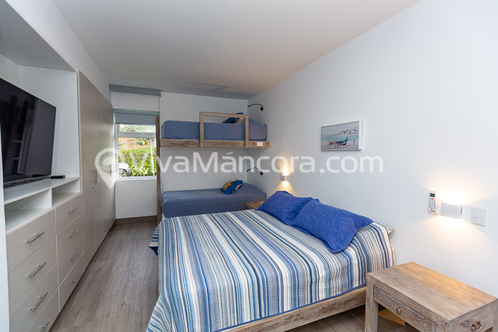 Baño propio, aire acondicionado, internet cableado con fibra óptica, colchones King y Queen marca Rosen y de 1 ½ plaza marca Paraíso.