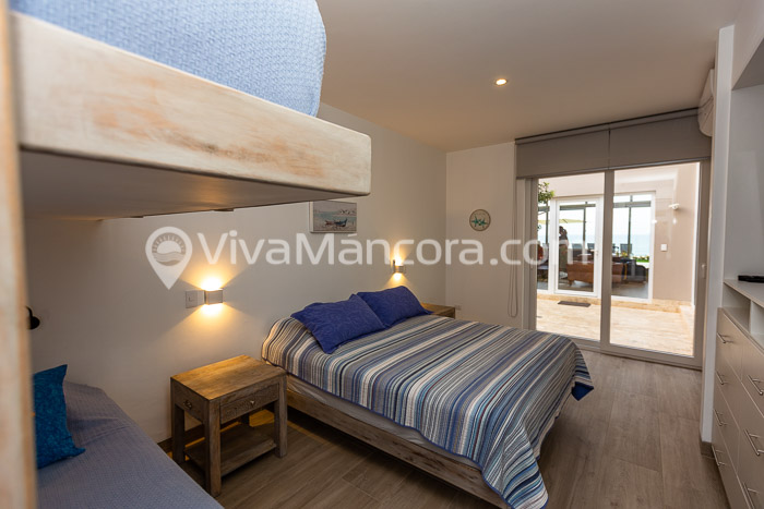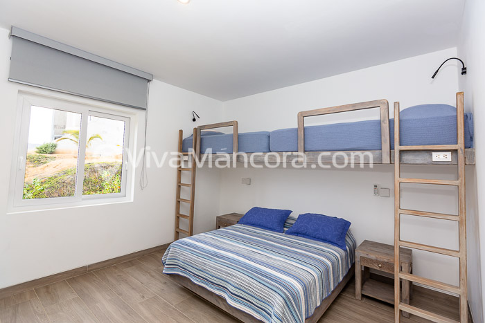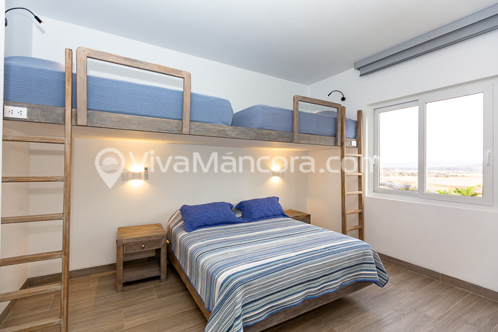 – 2 habitaciones con cama Queen + 2 camas de 1½ plaza.