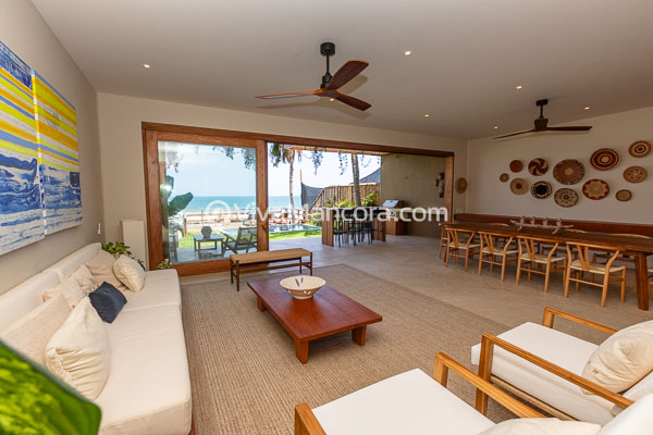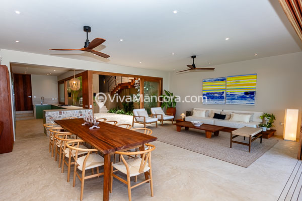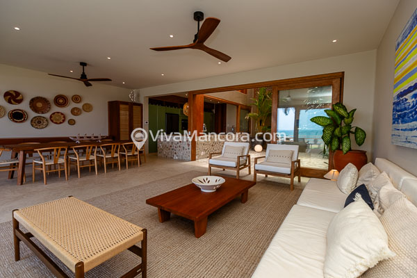 En el primer piso disfrutarás de una sala y comedor amplios con vista al mar, además de una cocina equipada.