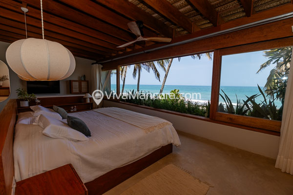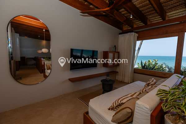 * Suite principal: cama king, vista al mar, espacio de trabajo, sillón para TV, walk-in closet y baño amplio.