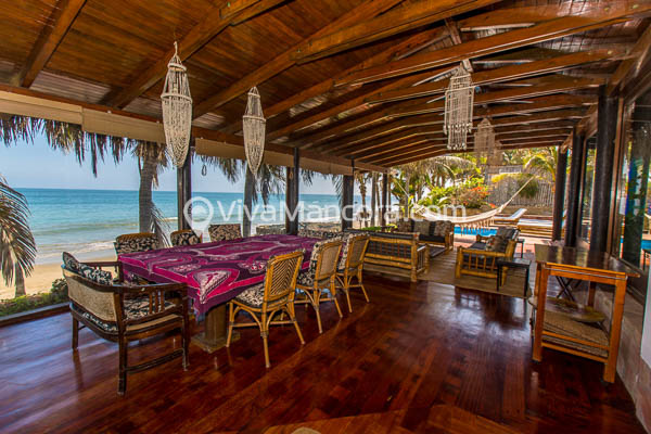Casa Mullu cuenta además con dos salas, dos comedores y una piscina al borde de la playa.
