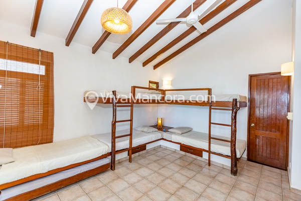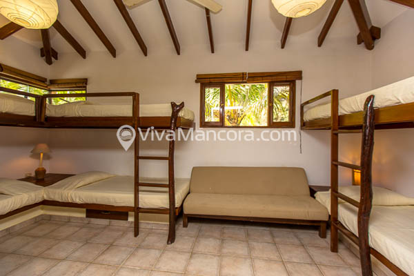 1 Dormitorio grupal de 4 camas, baño propio, balcón frente al mar.