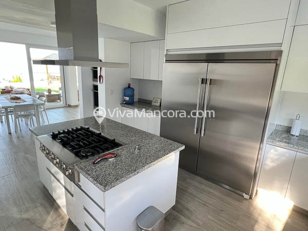 – Cocina con isla central y menaje completo para 12 personas.