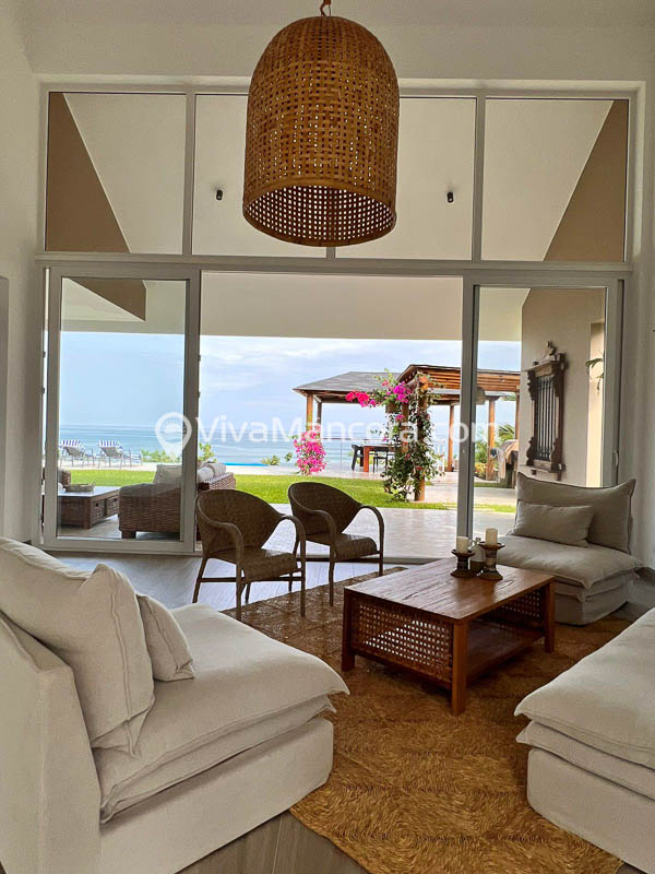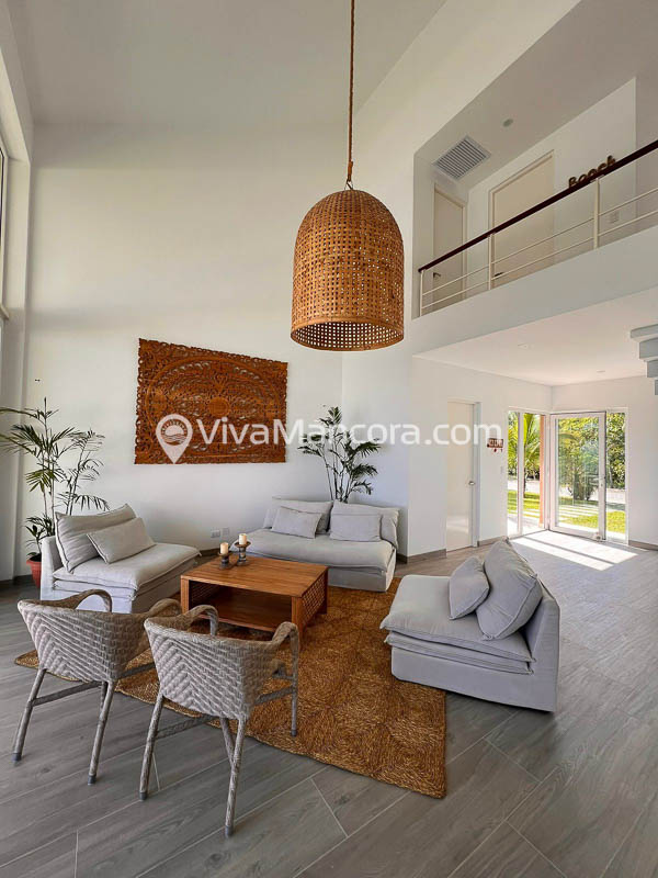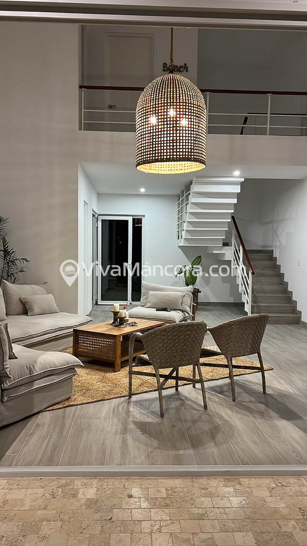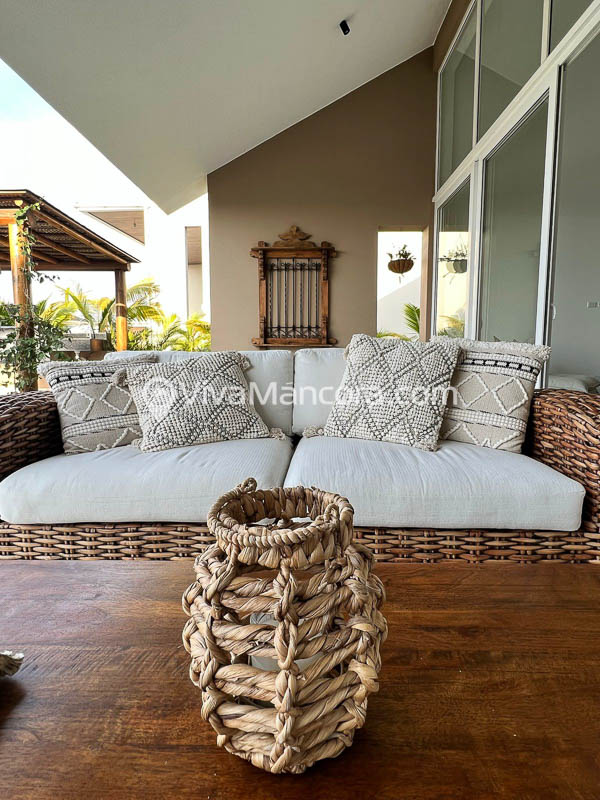 La casa está decorada con un estilo moderno, fresco y muy acogedor. Además está rodeada de bellas áreas verdes con palmeras y bugambilias.