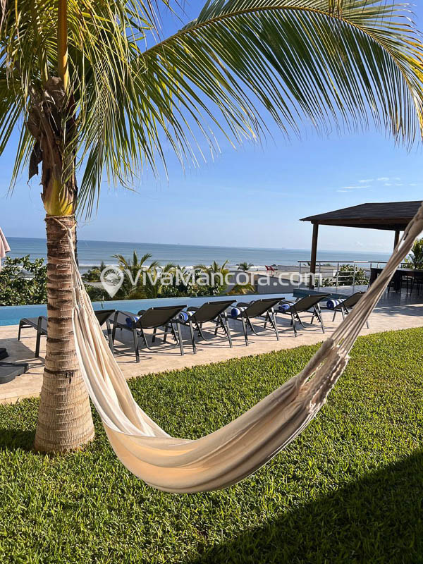 – Jardines que rodean la casa con palmeras y cómoda hamaca.