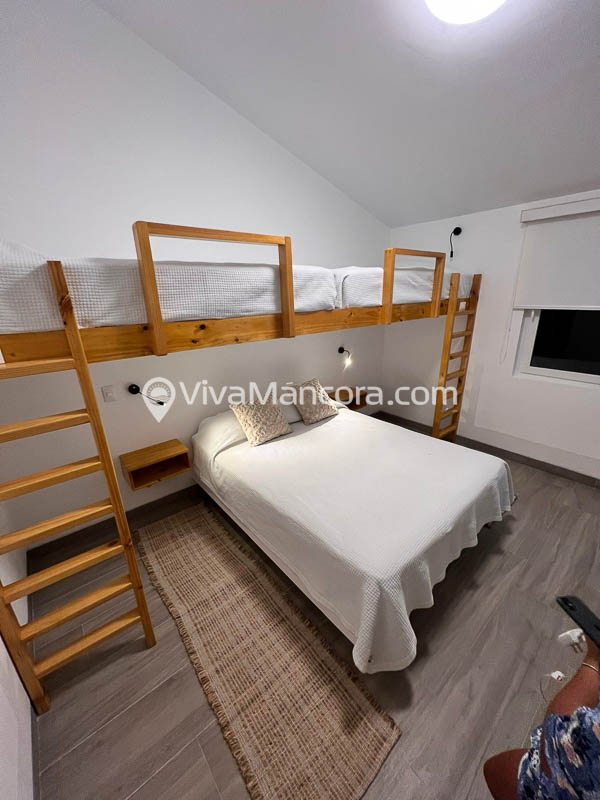 – 2 Habitaciones familiares con cama Queen + 1 camarote de cama plaza y 1/2.