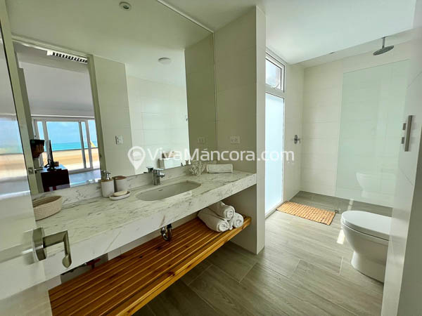 – La Suite con cama King , televisor con cable terraza con vista al mar.