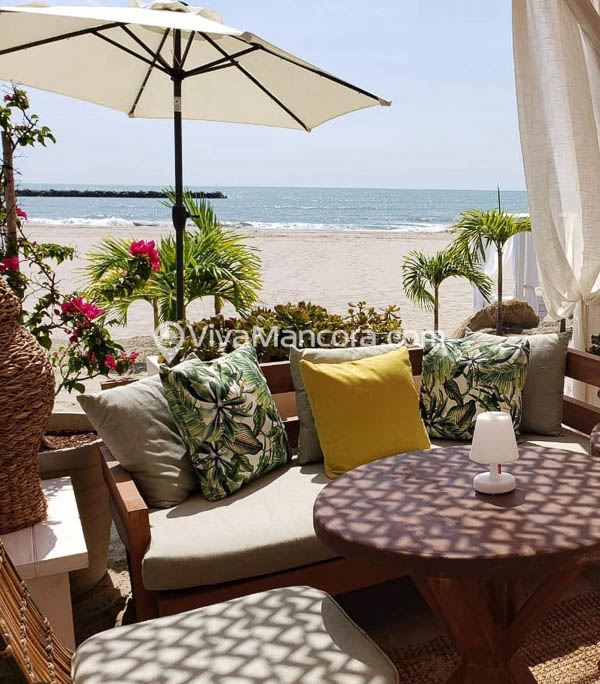 – Palapa en la playa con sillones de playa y mesa auxiliar.