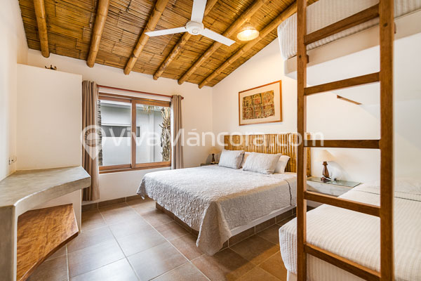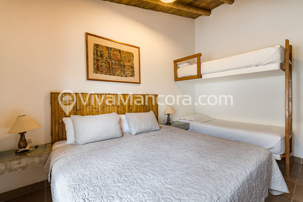 1 con cama king y camarote y otra con cama king ambas comparten baño.
