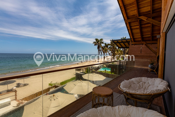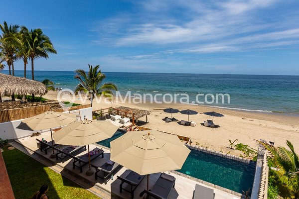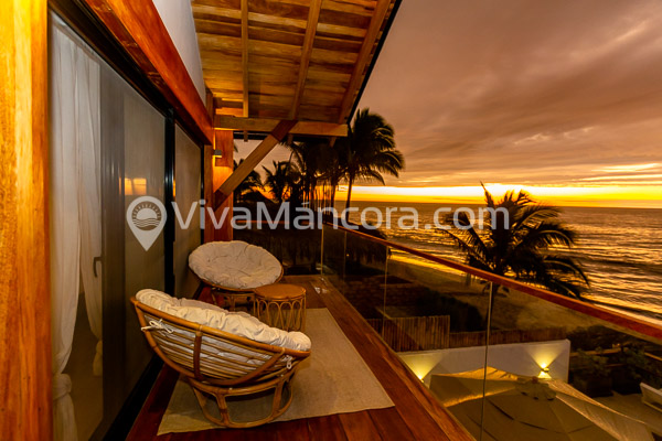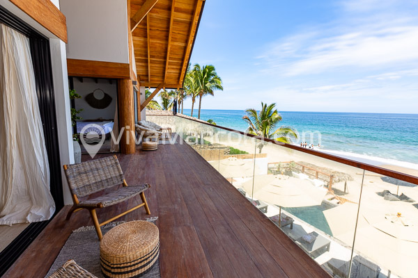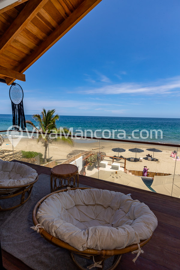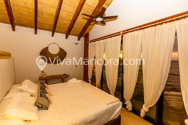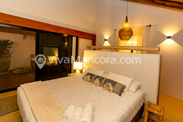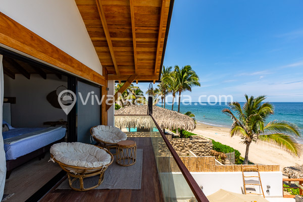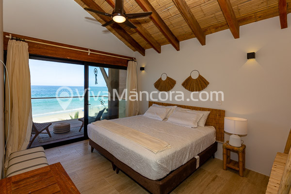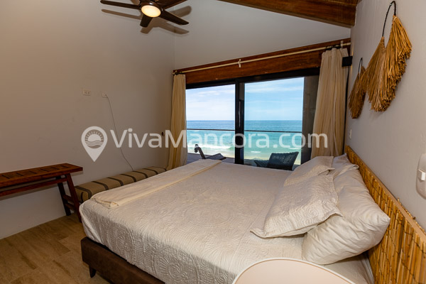 Segundo nivel: 2 habitaciones con dos camas de 2 plazas y 2 habitaciones con cama king, con vista al mar y gran balcón.
