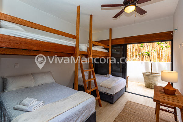 Todas las habitaciones cuentan con ventilador de techo, closet y baño completo.