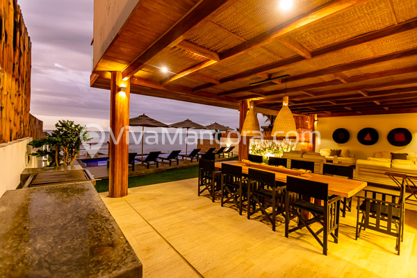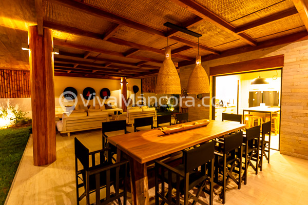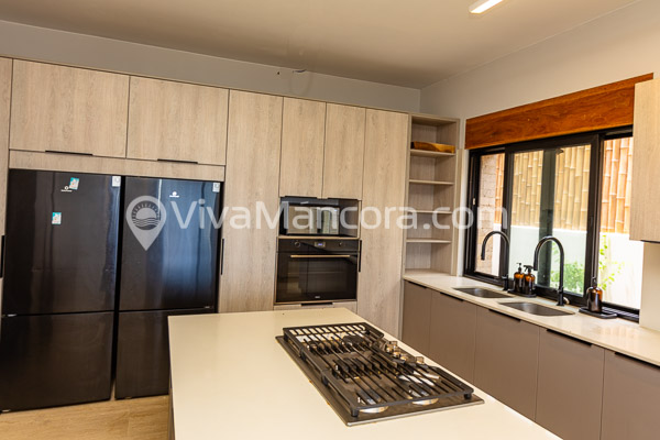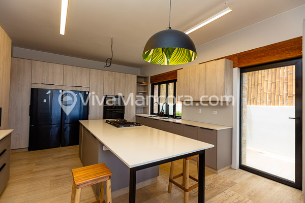 Casa Tiempo cuenta con una amplia sala comedor con vista al mar, cocina completa, terraza y piscina. Su cocina es amplia, moderna, con una espaciosa despensa.