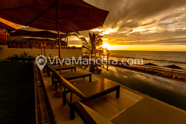 También se puede disfrutar de una terraza junto a la piscina, descansar en las poltronas.