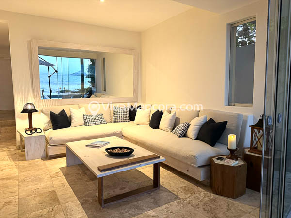 El sector donde se ubica Casa Blanca Beach Front es de absoluta tranquilidad, una pequeña herradura protege la casa del viento. Muy cerca de la casa se ubican los hoteles Arennas y KiCHIC, ambos de primera categoría que cuentan con excelentes restaurantes.
