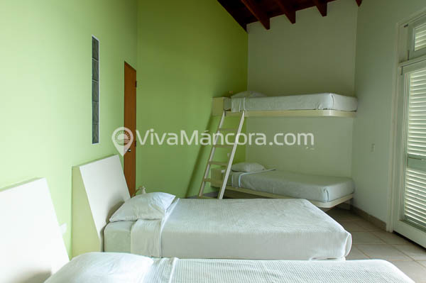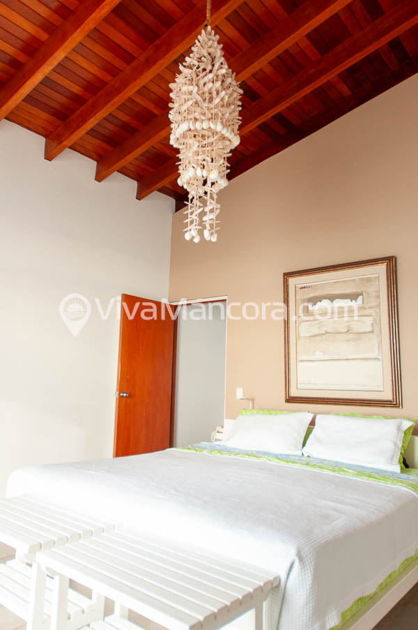 Kai House tiene 3 dormitorios; el dormitorio principal tiene una cama matrimonial y está en el segundo piso, cuenta con un baño propio con dos lavatorios; el dormitorio con cama queen con baño privado y dos lavatorios; y el dormitorio con dos camarotes con baño propio. Todos los cuartos tienen vista al mar y tienen una terraza privada.