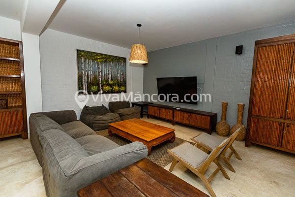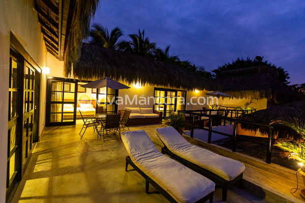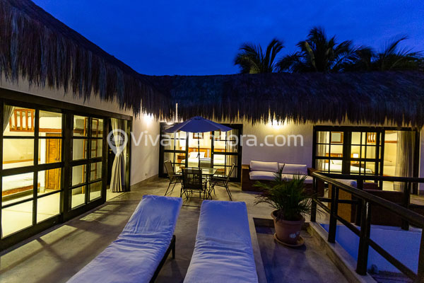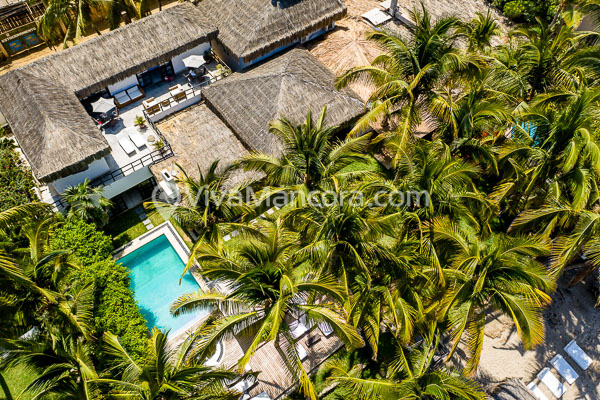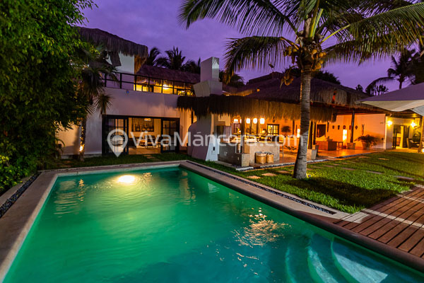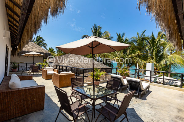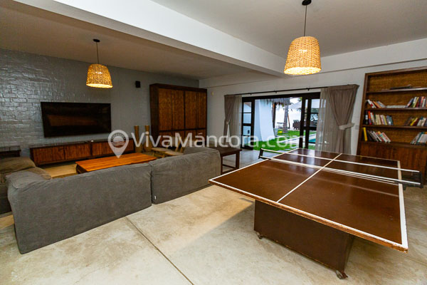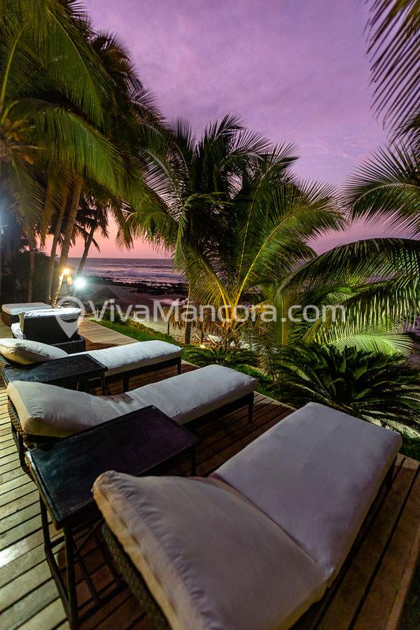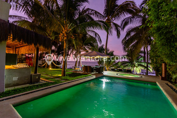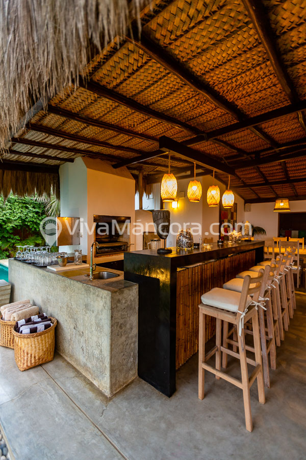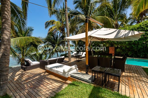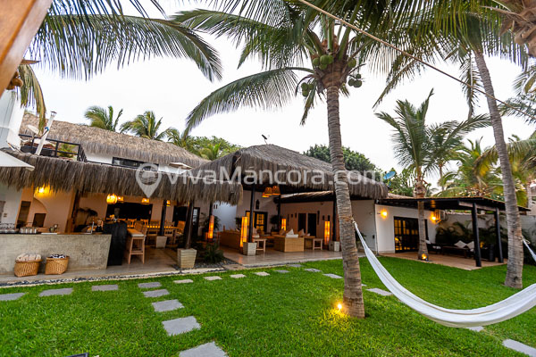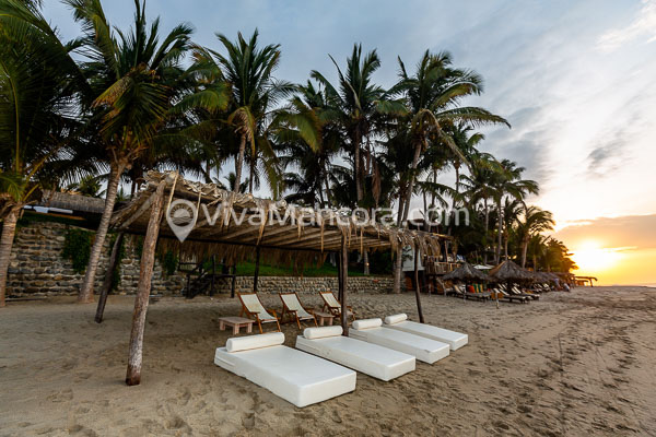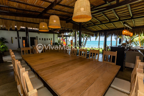 La zona de playa incluye sombras, tumbonas y camas colchonetas. En el primer piso se encuentra una amplia sala y comedor, cocina con 5 refrigeradores y 2 congeladores, un bar con una barra, horno de barro, cilindro y BBQ, todo con vista al mar.