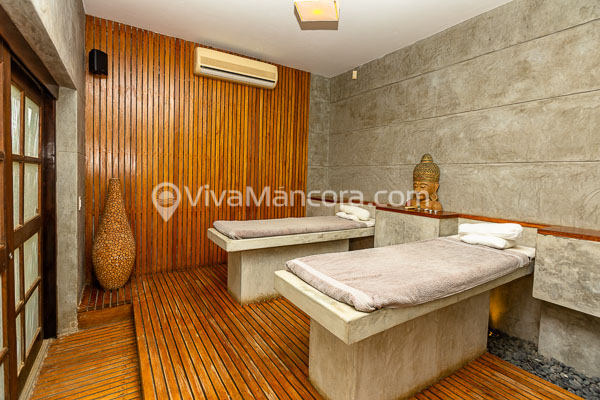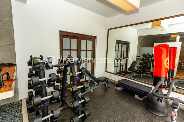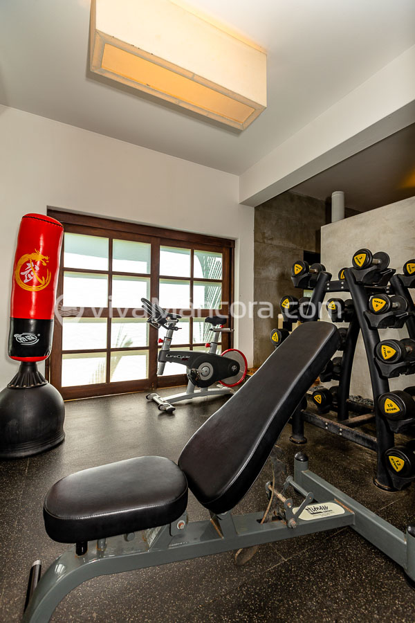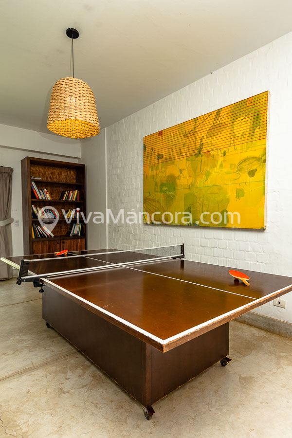 En el segundo piso hay 3 habitaciones con una amplia terraza equipada con mesas, sillas, sombrillas y poltronas. La casa cuenta también con una sala de televisión, sala de juegos con mesa de ping pong, 2 kayaks dobles, mini gimnasio y una relajante sala de masajes con 2 camillas (masajista por citas). Todos los ambientes tienen aire acondicionado.