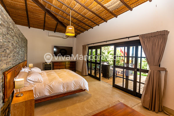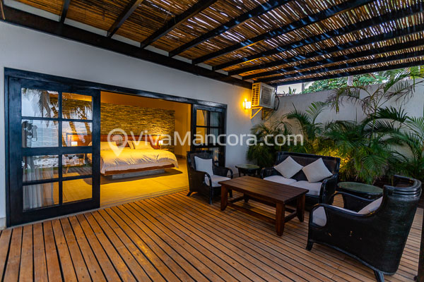 • Habitación 01: Suite matrimonial frente al mar con cama King, walking closet, baño privado con bañera, smart TV, frigobar y amplia terraza con sala vista al mar.