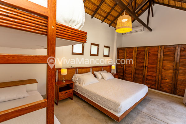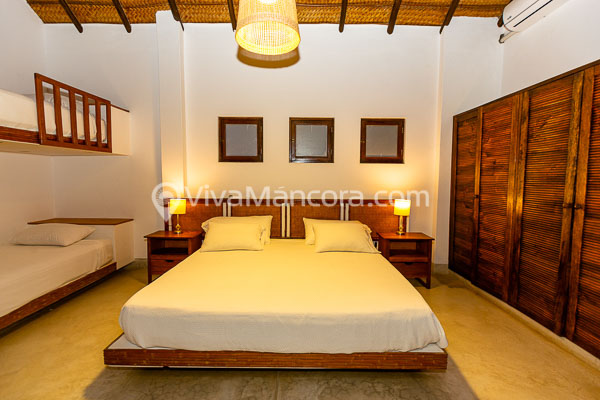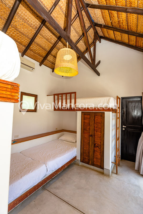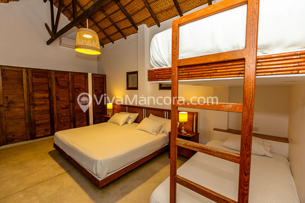 • Habitación 03: Habitación cuádruple familiar con 2 camarotes, closets, baño privado y frigobar.