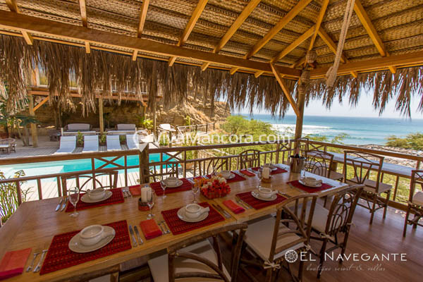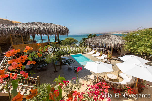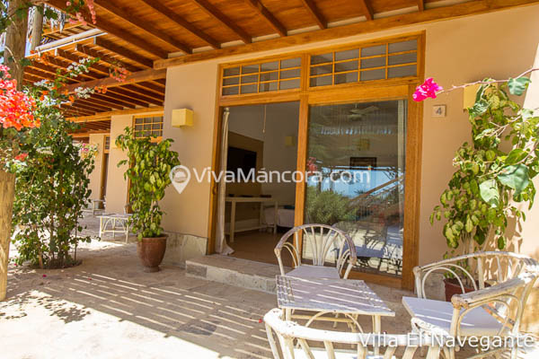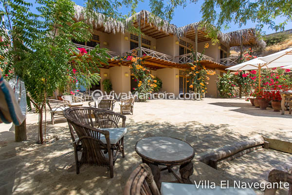 Subiendo unas escaleras y disfrutando de una vista privilegiada de la bahía de Punta Veleros, se encuentra La Villa del Navegante, con sus olas del lado sur y sus veleros del lado norte. Los vehículos tienen acceso directo a la casa y los huéspedes pueden llegar a la playa a través de unas escaleras de piedra.