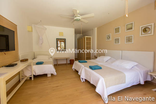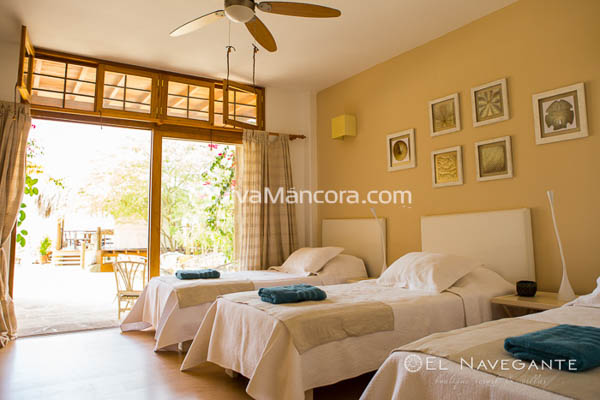 La Villa del Navegante, consta de 8 habitaciones independientes, todas con vista al mar y con capacidad total para 20 personas. Son 4 dormitorios con Cama King Size y 4 dormitorios con 3 camas de plaza 1/2 cada uno. Todos tienen baño propio, Smart TV, caja de seguridad, terraza y frigobar.