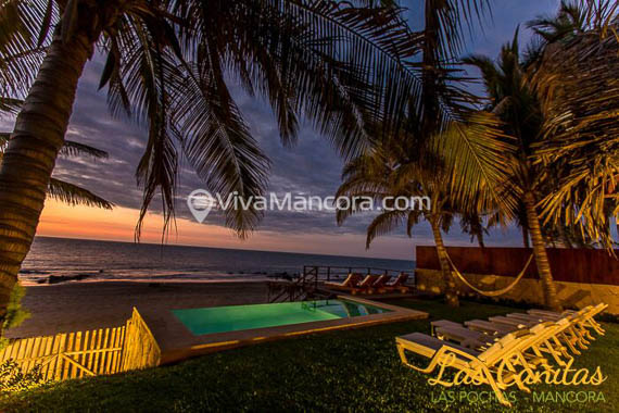 Casa Las Cañitas se ubica frente al mar, en primera fila, en la playa de Pocitas (Máncora Chico), a 5 kms aprox. desde Máncora pueblo.
