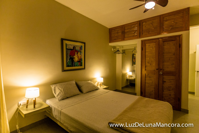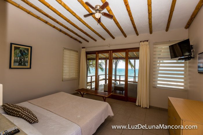 • 1er dormitorio cama queen size, con vista al mar, con baño y terraza.
