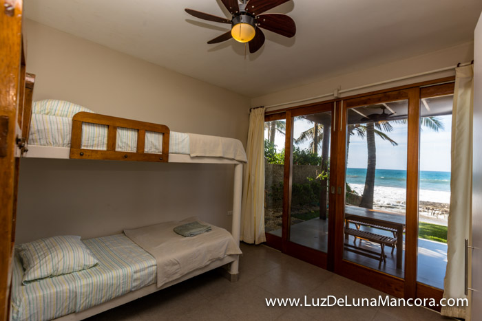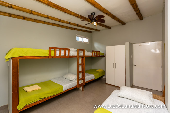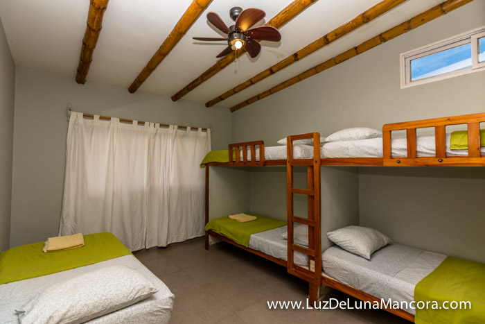 • 2do dormitorio con 4 camas, con vista al mar, baño fuera de la habitación