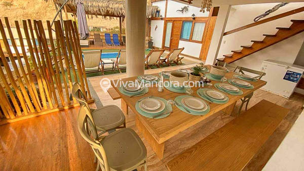 La casa es amplia, cómoda y fresca, con dos pisos, múltiples terrazas, piscina y zonas ideales para descansar, comer delicioso o simplemente disfrutar la vista.