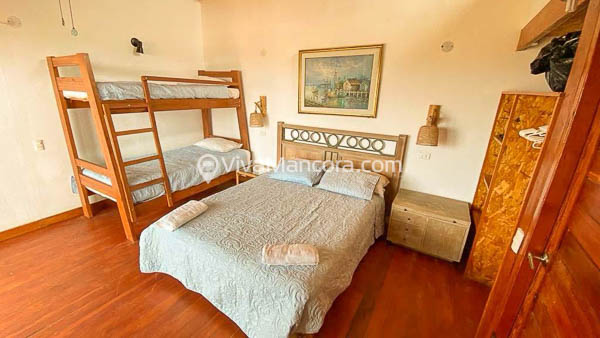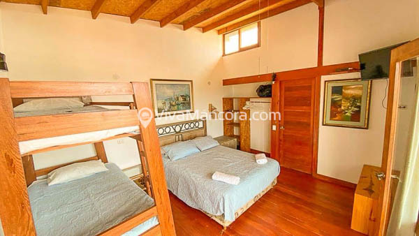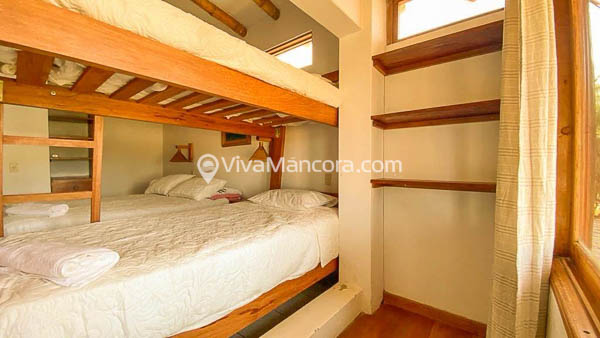1 habitación matrimonial con cama Queen + 1 camarote (hasta 4 personas), baño compartido.