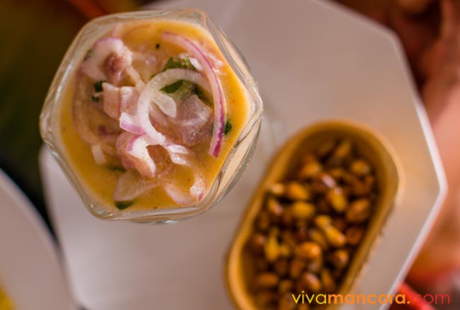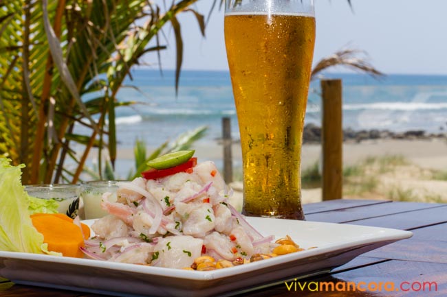 El ceviche es el plato emblema de Máncora y playas cercanas; la frescura de un robalo o un mero murique en un ceviche siempre servido con yuca, camote y cancha, es delirante.